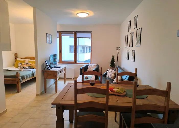 Pentru a vă bucura de vacanța în Bansko, cazați-vă la Pine'S Lodge - Cozy Studio With Free Bottle Of Wine, Private Wifi, Free Parking Bansko de 44 m², care se află la doar 1.3 km de Telescaun Bansko și la aproximativ 15 minute de mers pe jos de Bansko Ski Mania.